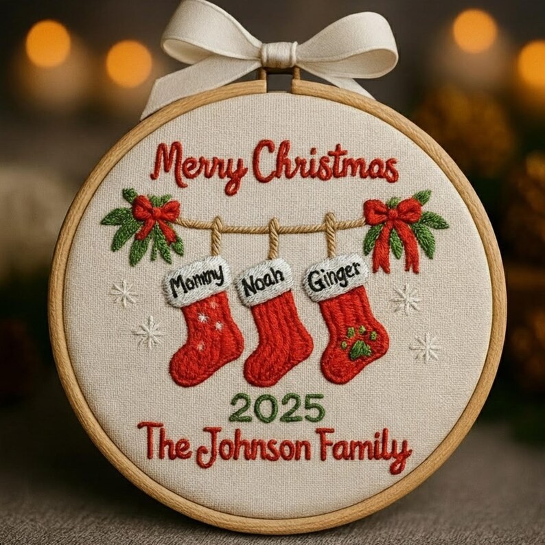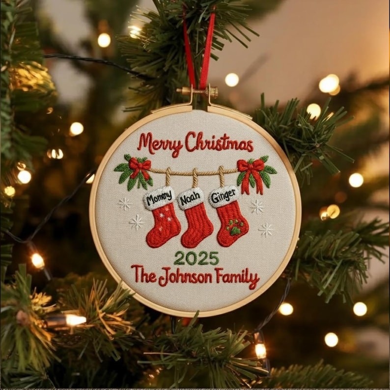 Personalized Embroidery Family Christmas Ornament Gift for Families 2025