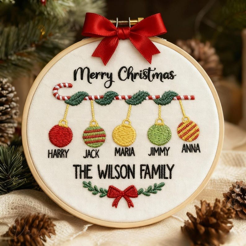 Celebrate your family this holiday season with a custom embroidered Christmas hoop ornament!  A beautiful keepsake for 2025 that makes the perfect Christmas gift.