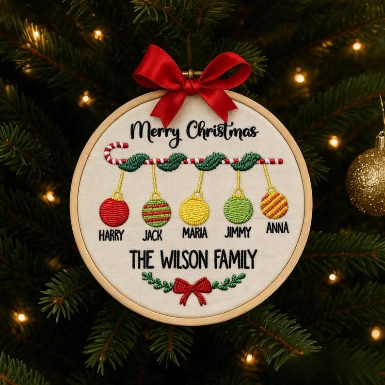 Personalized Embroidery Family Christmas Ornament Gift for Families 2025