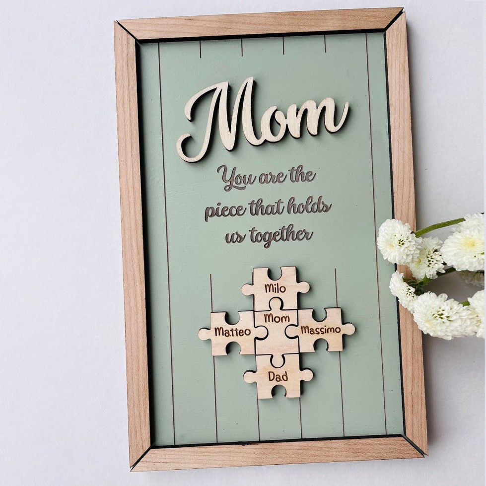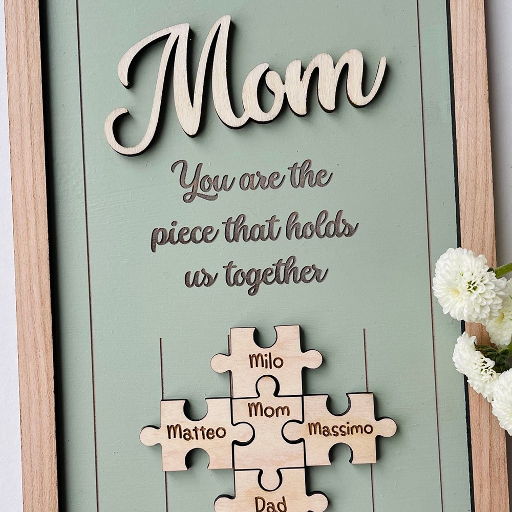 Mom You Are The Piece That Holds Us Together Wooden Puzzle Piece Mother's Day Sign