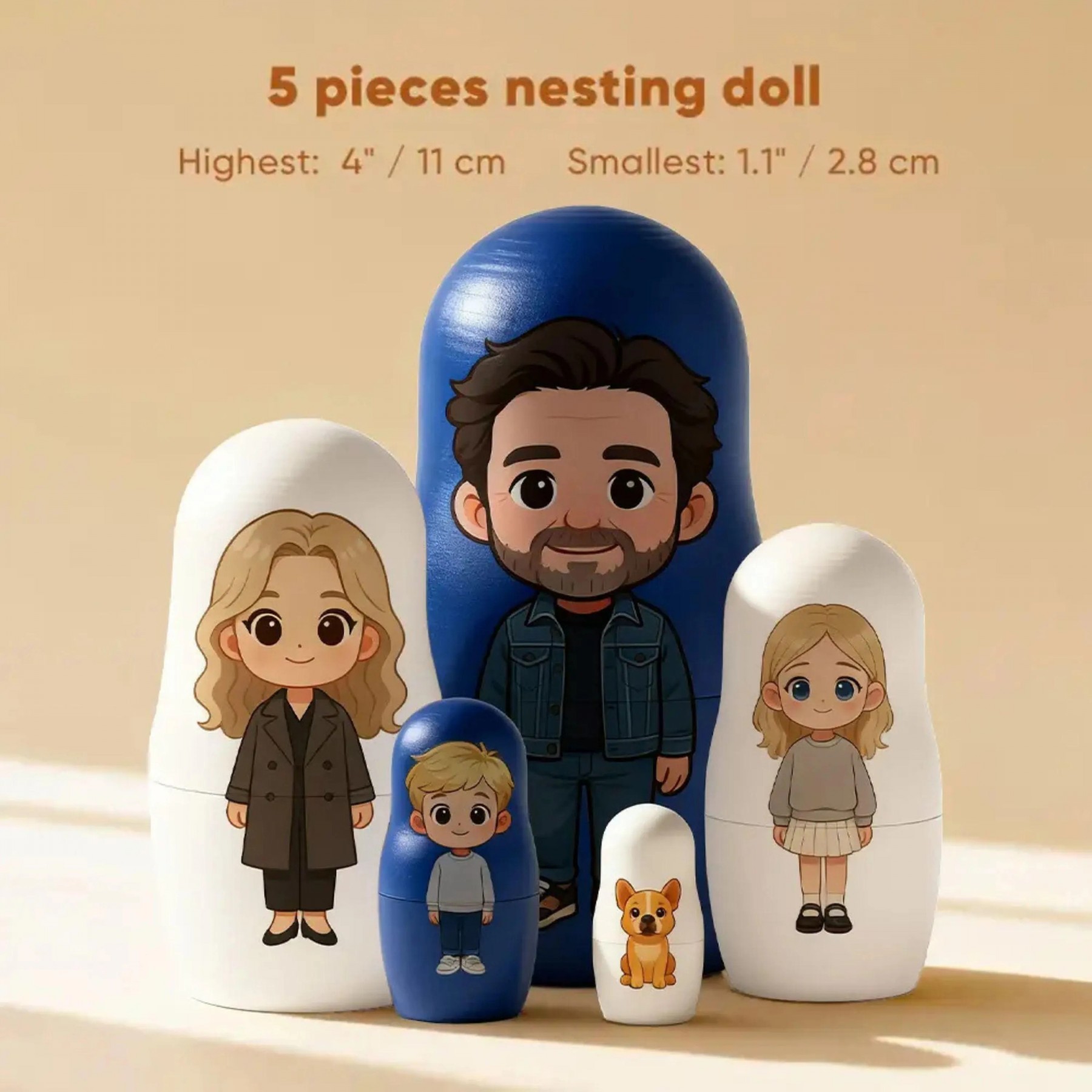Custom Portrait Nesting Dolls bring joy and color to any space with playful, cartoon-style illustrations based on your photos. These unique, handcrafted Matryoshka dolls make thoughtful keepsakes for family and friends. Each set is custom-made, gift-ready, and perfect for holidays, birthdays, or special occasions.